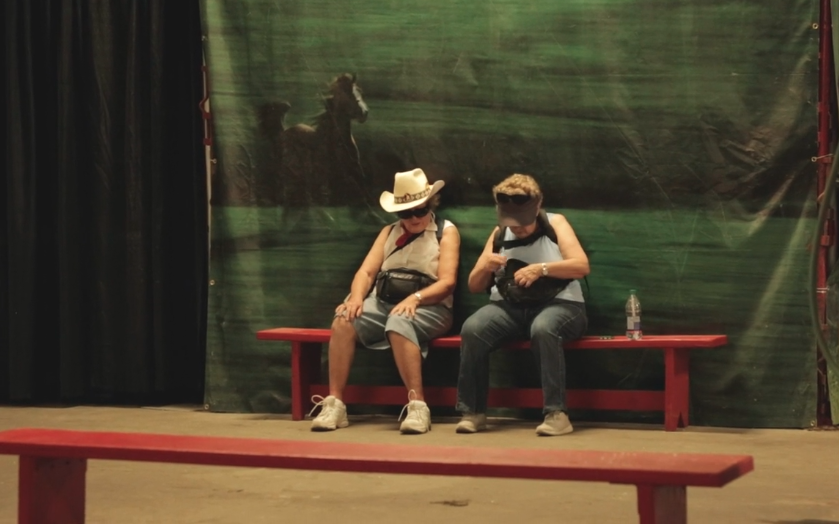 Unfolding over the course of a day, Stampede turns its attention to visitors at the event. We follow them through the entrance line, onto rides, and standing for the national anthem. Crowds crunch popcorn, eat giant turkey legs, and horses are tenderly groomed. The film focuses on faces and gestures as people wait absentmindedly, tuning out the noise. Inward looking with subtle humour, these portraits begin to reveal the quietness at the heart of the crowd, and as the sun goes down a sense of exhaustion rises.
